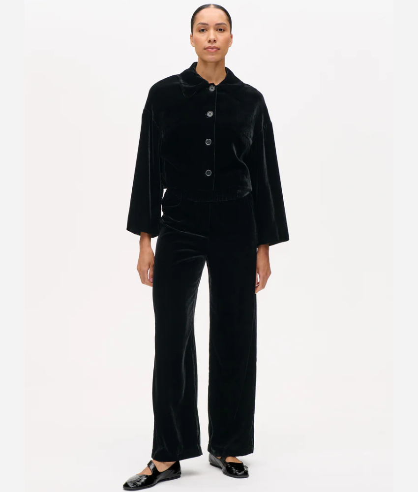 Baums Bebeth Jacket is a laid-back yet luxurious piece made in soft velvet. The velvet light jacket has a loose fit with cropped length and dropped shoulders for a soft and relaxed look. Style it with jeans or our matching Nibale Trousers for the ultimate comfy look.