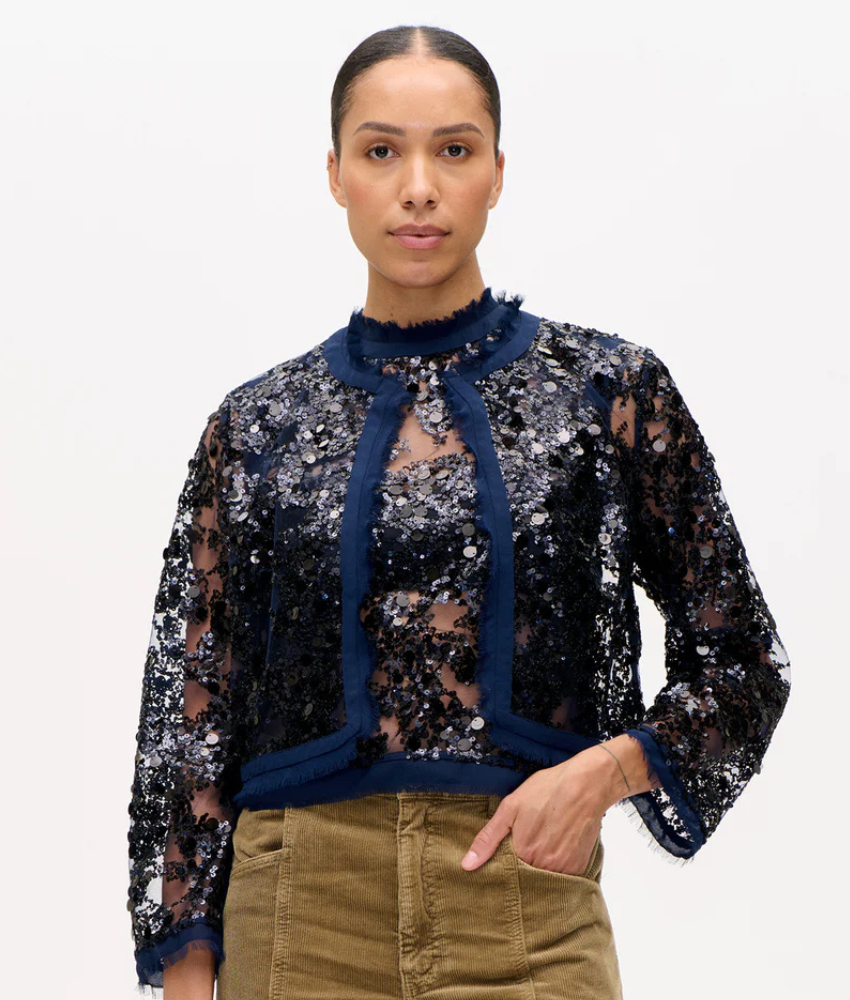 The Baum Bethina Jacket is a cropped sequins jacket that adds some glamour to your wardrobe. The sheer jacket has many unique details such as sequins detailing, hook closure and frayed hems, which add a hint of edge to the chic silhouette. Perfect for layering, the jacket is a bold yet versatile piece for special occasions and elevated everyday looks.