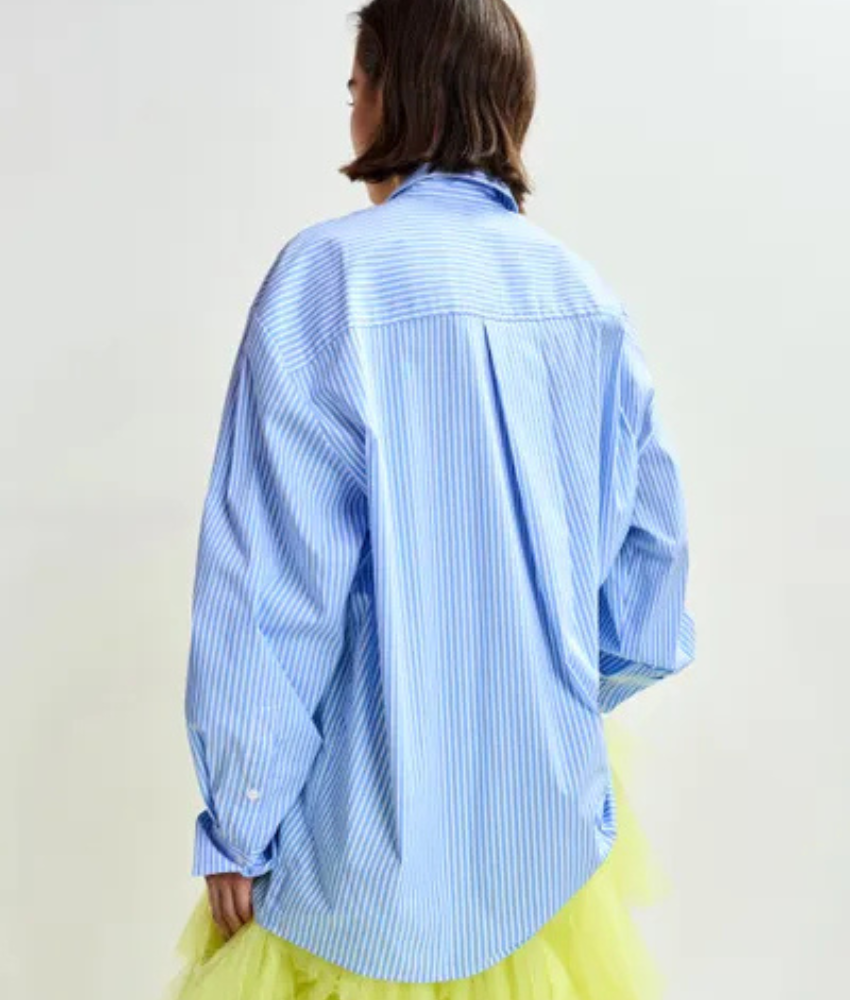 Crafted from a crisp striped cotton fabric, The Jiwi Shirt from Essentiel Antwerp is designed for an oversized fit with dropped shoulders and a gently rounded hemline. Two appliquéd bows made from ties adorn the front, while a single chest pocket and button fastening keep the silhouette timeless.