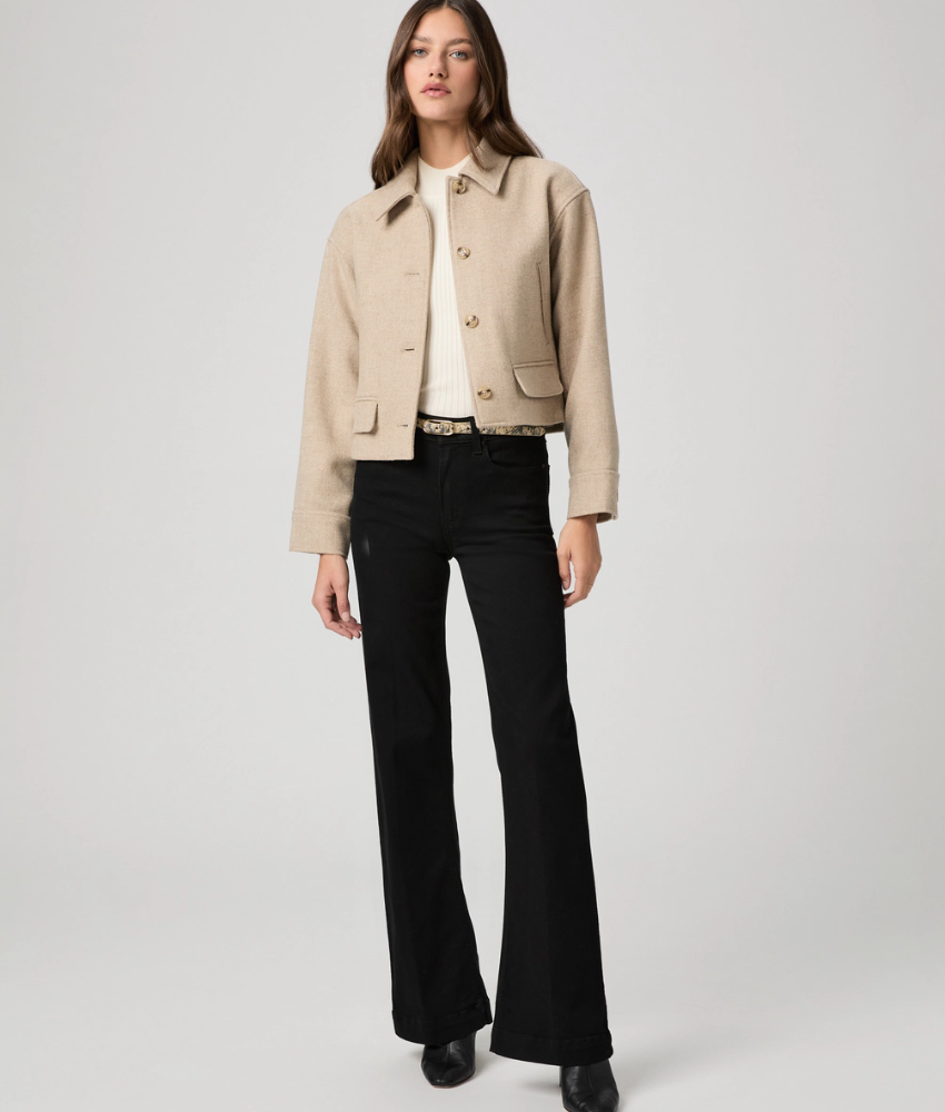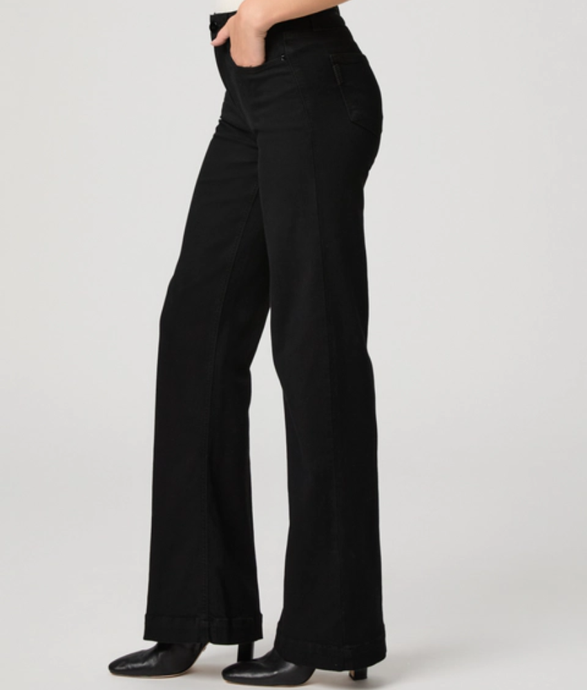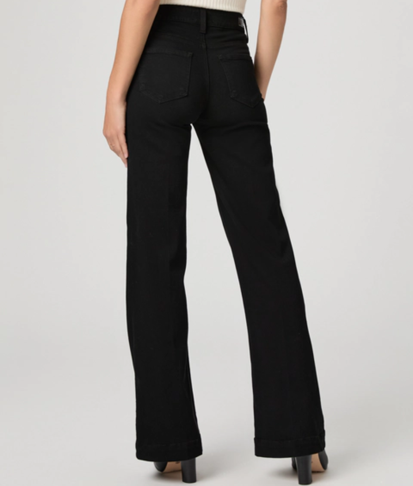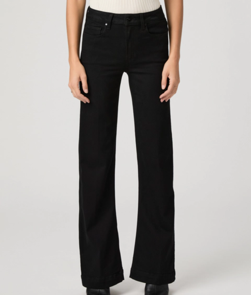Paiges Leenah 32" sleek wide leg jeans are designed with a high-rise and a flattering bow leg silhouette. In their best-selling black shadow wash with a 32" inseam, this pair is cut from TRANSCEND, the original high-stretch fabric that redefined comfort in denim.