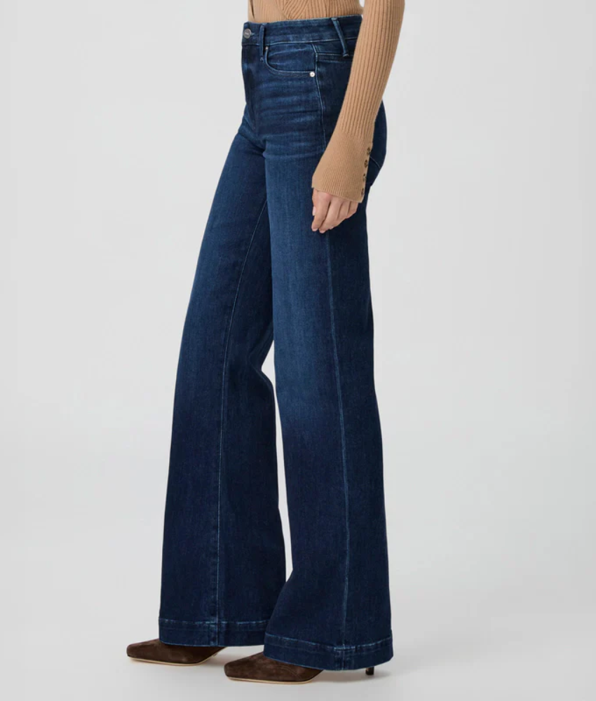 Paiges Leenah 32in in Praline channels a 90s-inspired wide leg with a flattering high-rise silhouette. Crafted from TRANSCEND VINTAGE denim, these jeans offer a chic, dark wash that embodies the authenticity of vintage denim while ensuring all-day comfort with plenty of stretch. Perfect for pairing with both flats and heels, this versatile style works effortlessly for work or weekend occasions.