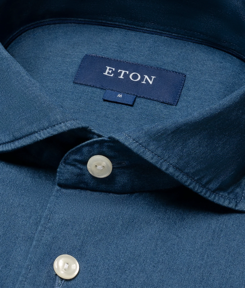 One of Eton's most popular and versatile shirts. A wardrobe staple made from a lightweight Italian-wove fabric. Garment-washed for a softer fabric and featuring a mélange effect. This style combines the look of denim with dressier elements. A versatile, timeless shirt suitable for any business casual or casual look.