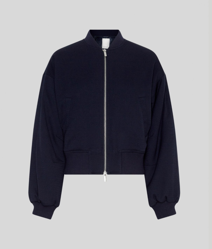 The Madalie Jacket from MSCH Copenhagen is a short bomber jacket that has a modern and relaxed look with subtle volume. Designed with a full zip closure, ribbed collar, and ribbed cuffs and hem for a comfortable fit. Discreet front pockets complete the clean design. A versatile jacket that works perfectly as a transitional piece and can be styled both casually and more dressed up.